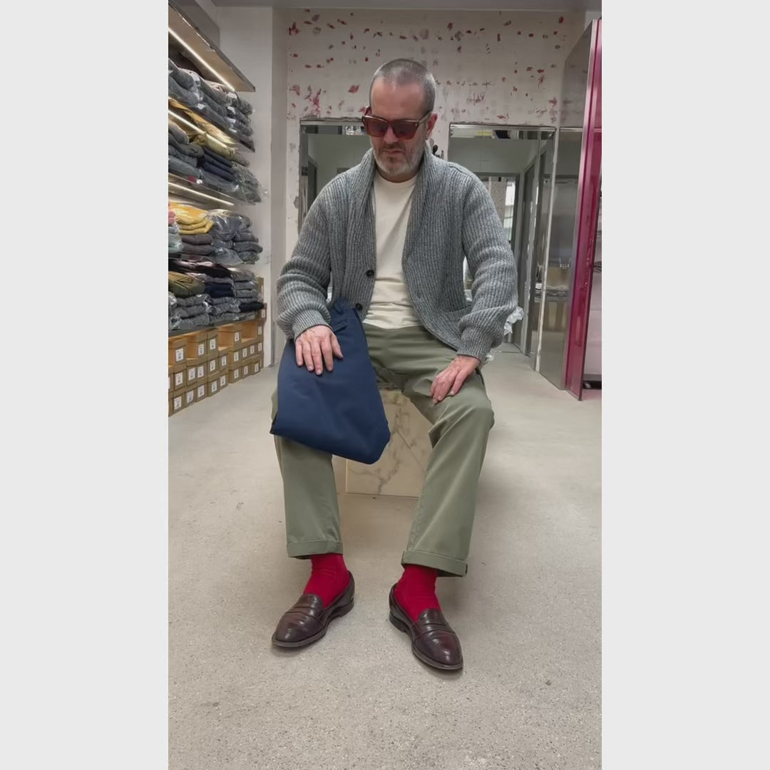 Pantalone realizzato in tessuto gabardine trattamento Carbon.