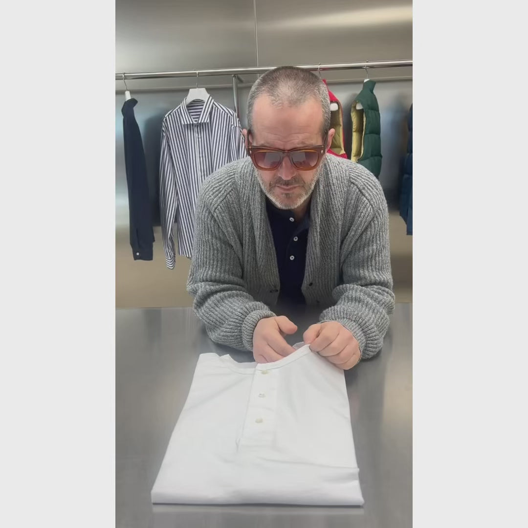 Maglia serafino manica corta realizzata in 100% cotone fiammato.