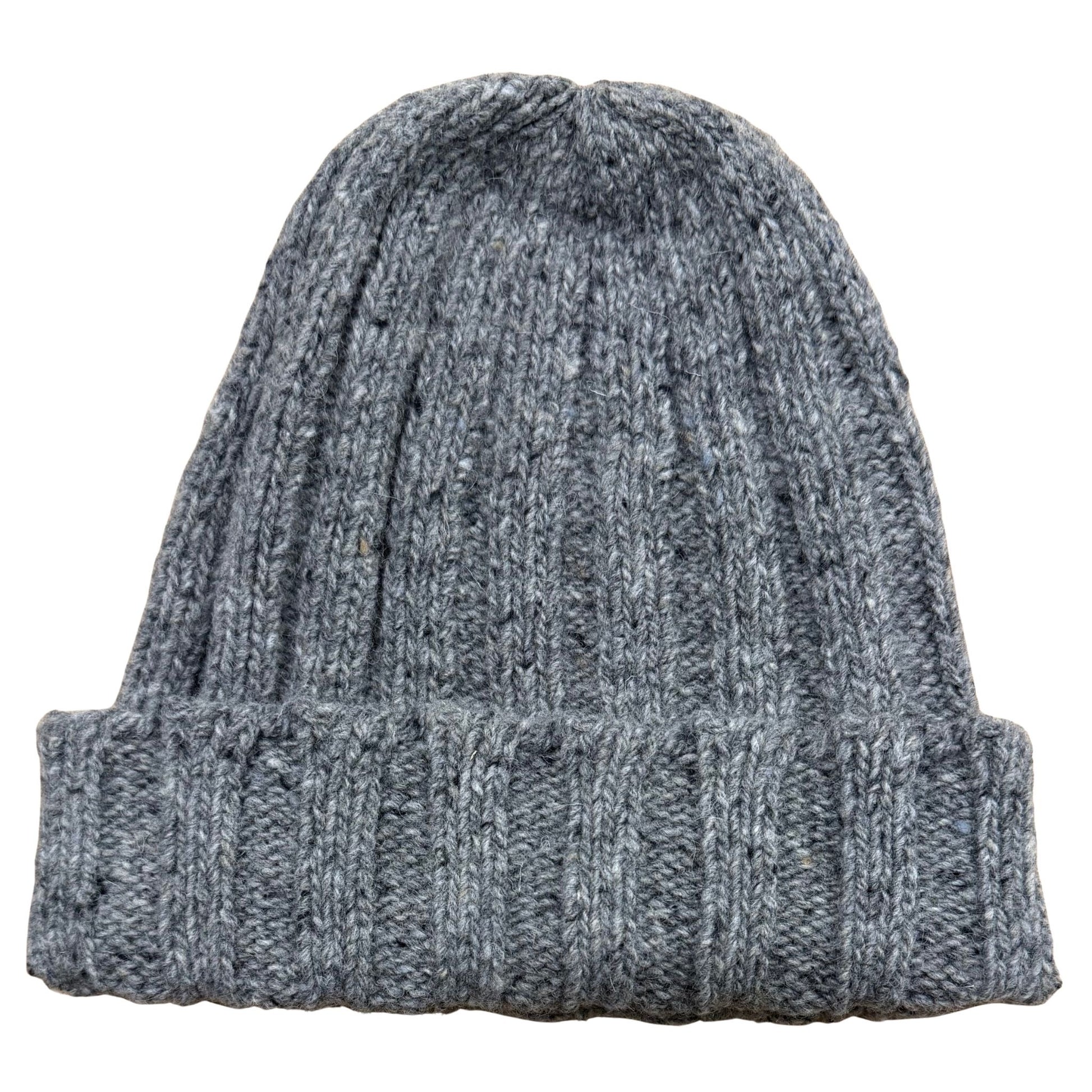 Berretto con lavorazione a coste in finezza 3 realizzata con filato Donegal bottonato.