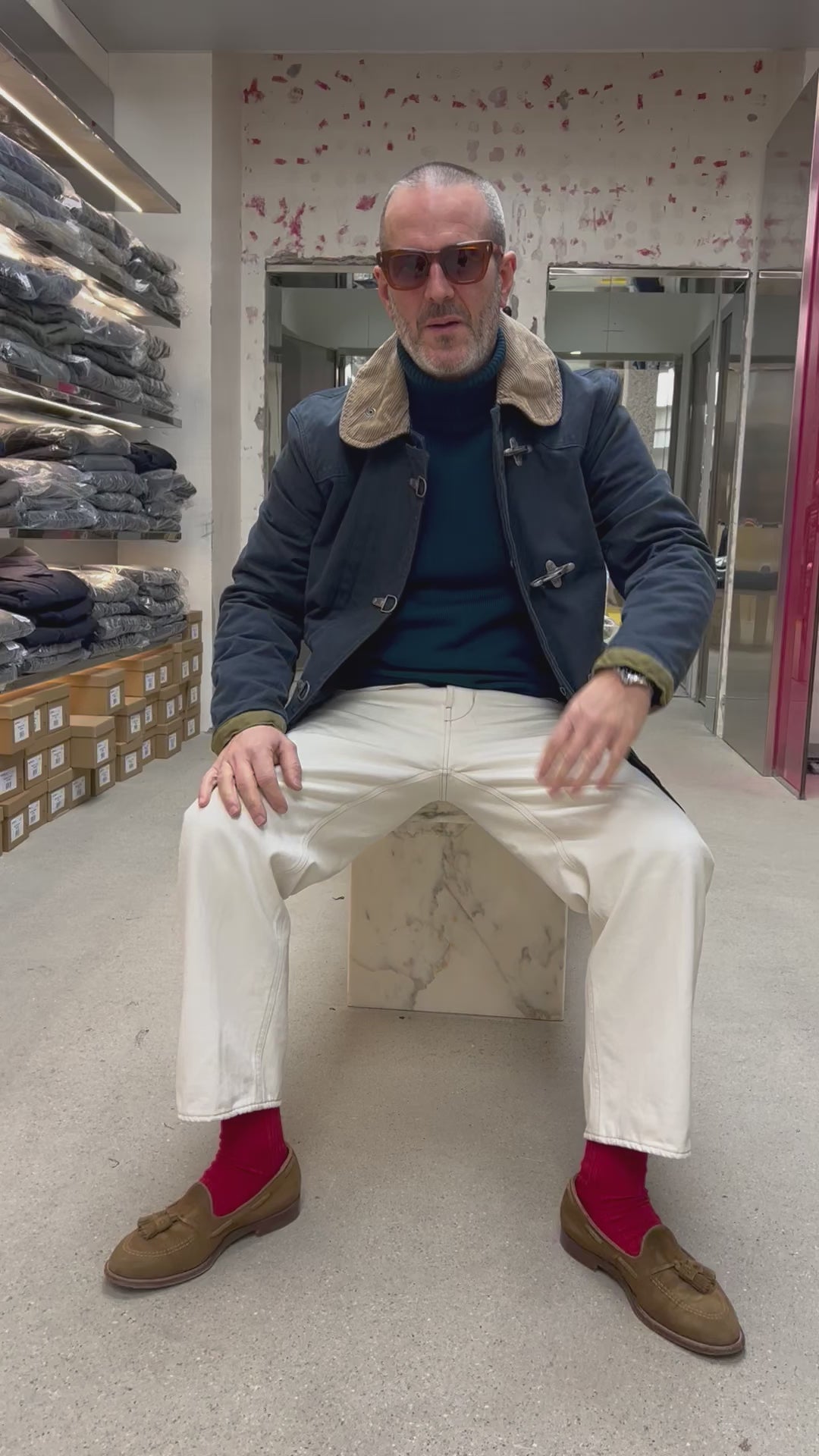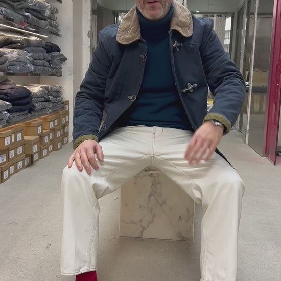 L’iconico 4 Ganci ispirato alle divise dei pompieri americani, è caratterizzato dall’inconfondibile chiusura con ganci in metallo, dettagli in crosta e colletto in velluto.