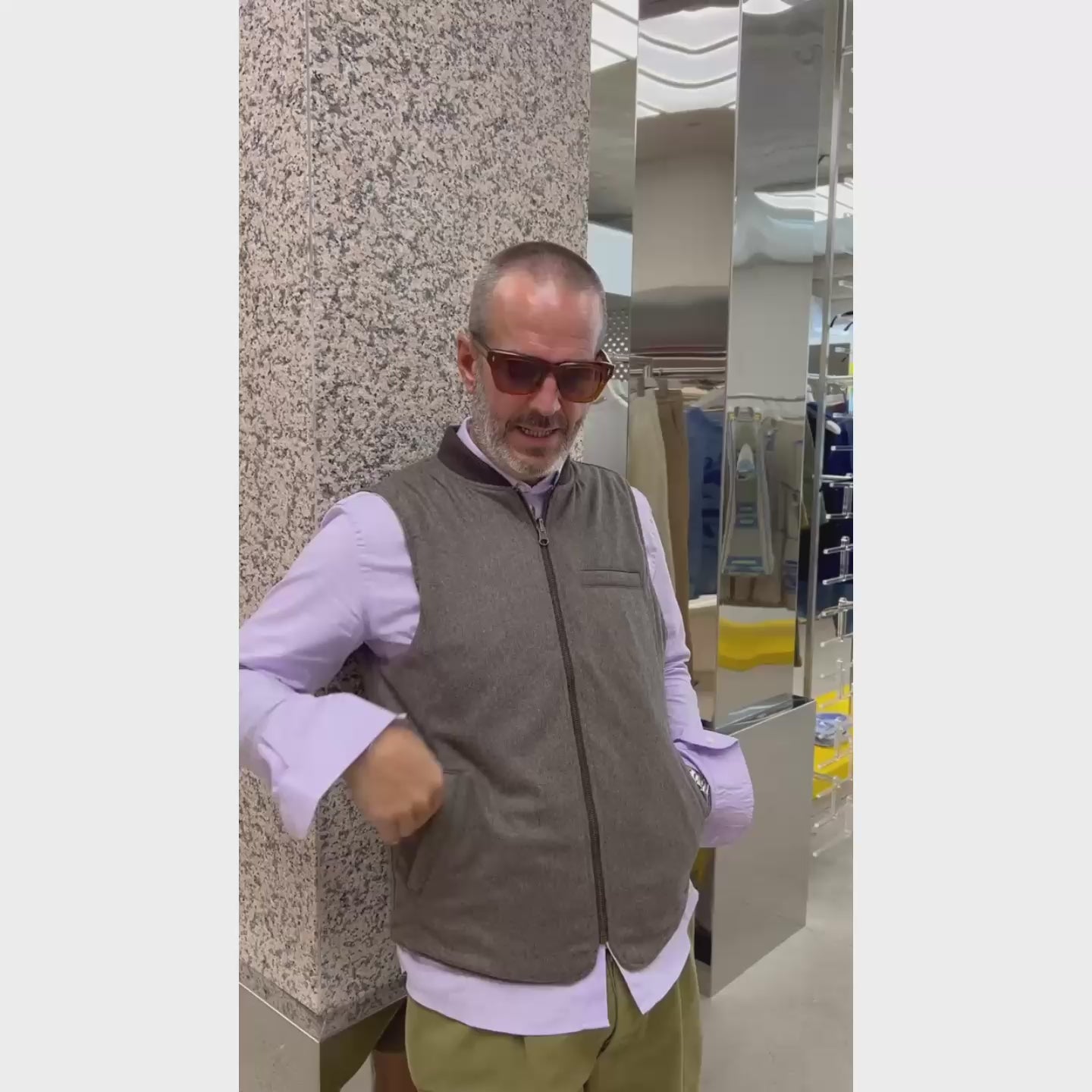 Gilet reversibile trapuntato realizzato in panno di lana pettinata .