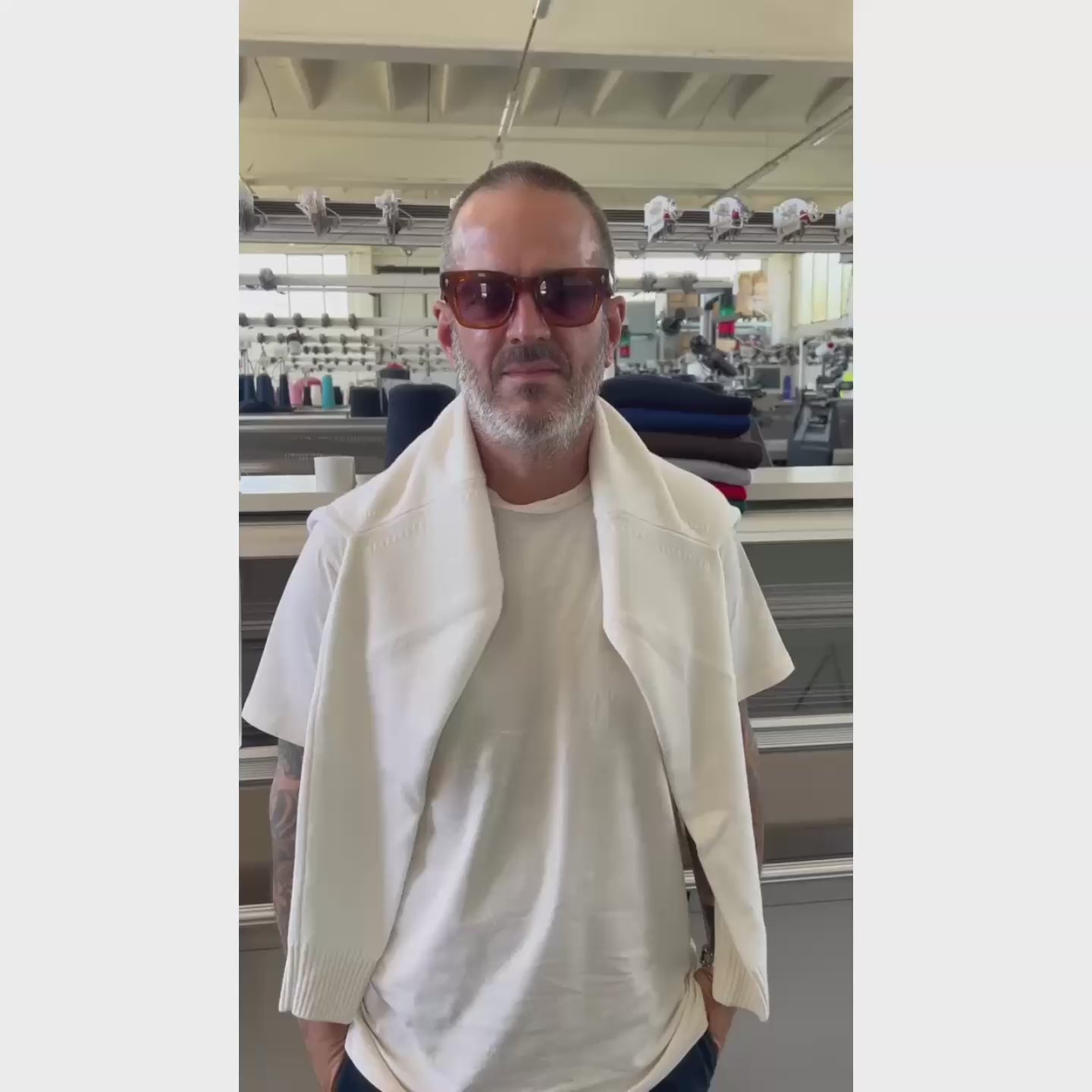 Maglia girocollo realizzato con filato extrafine lavorato in finezza 7 a quattro fili ritorti.