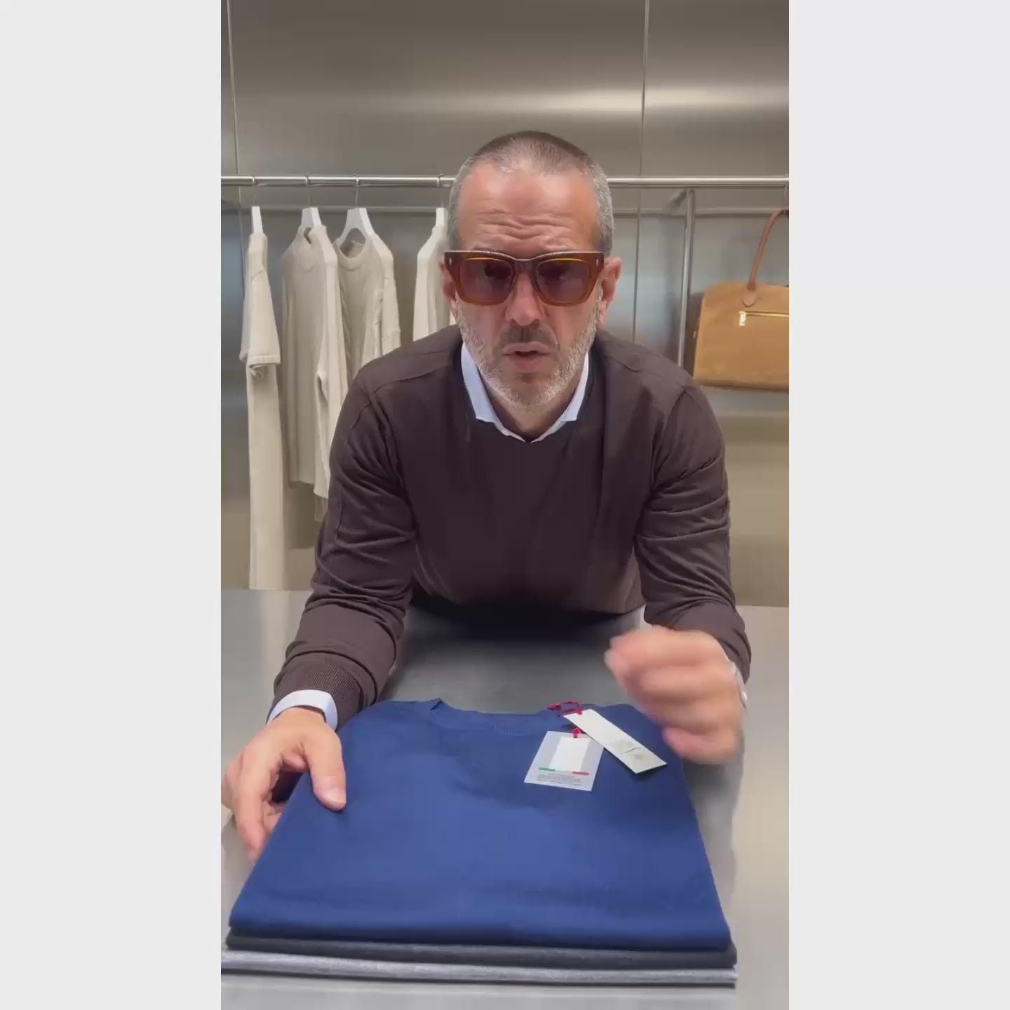 Maglia girocollo realizzata con filato extrafine pettinato super 120S in finezza 18.