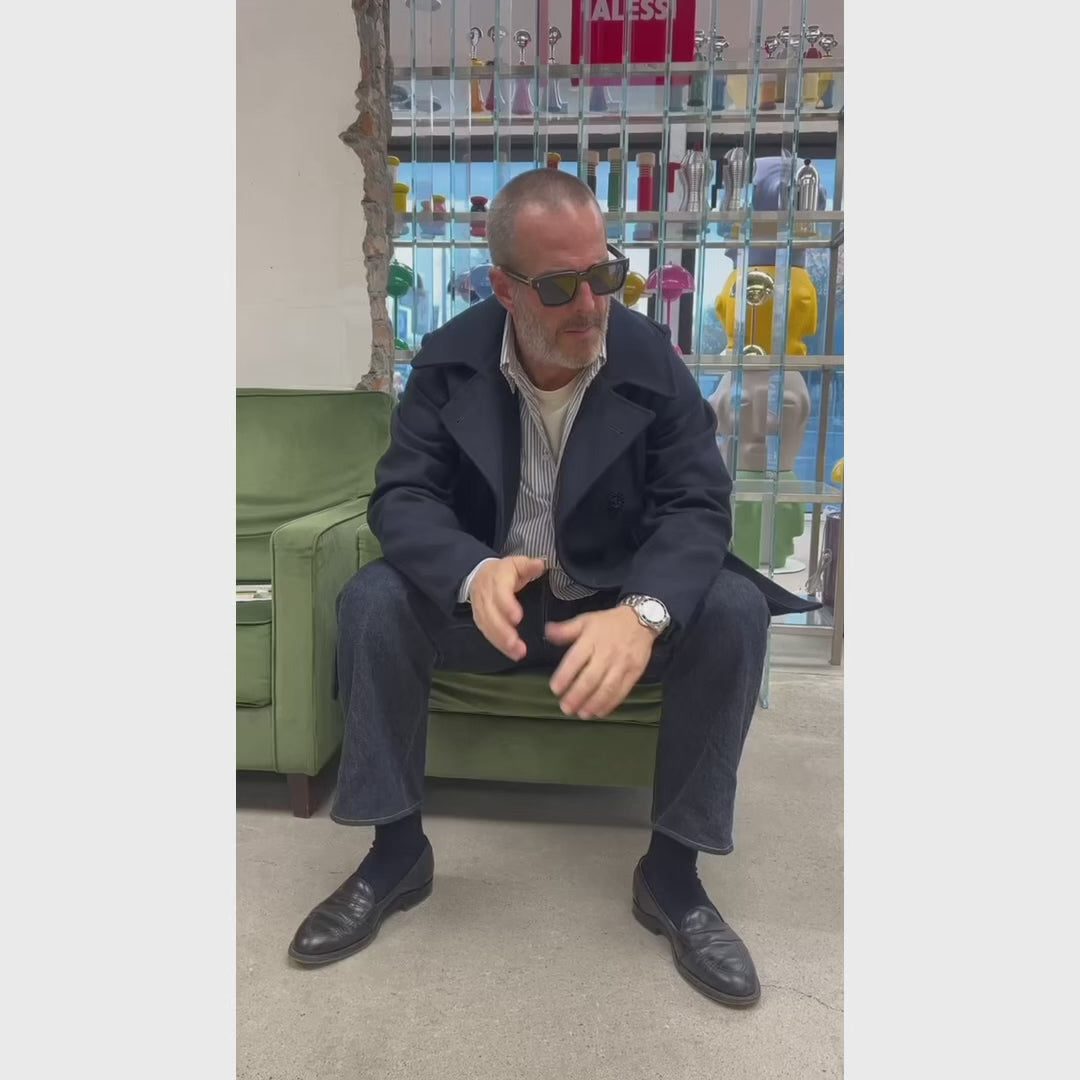 Peacot realizzato in panno lana melton da 950gr. in colore blue navy.