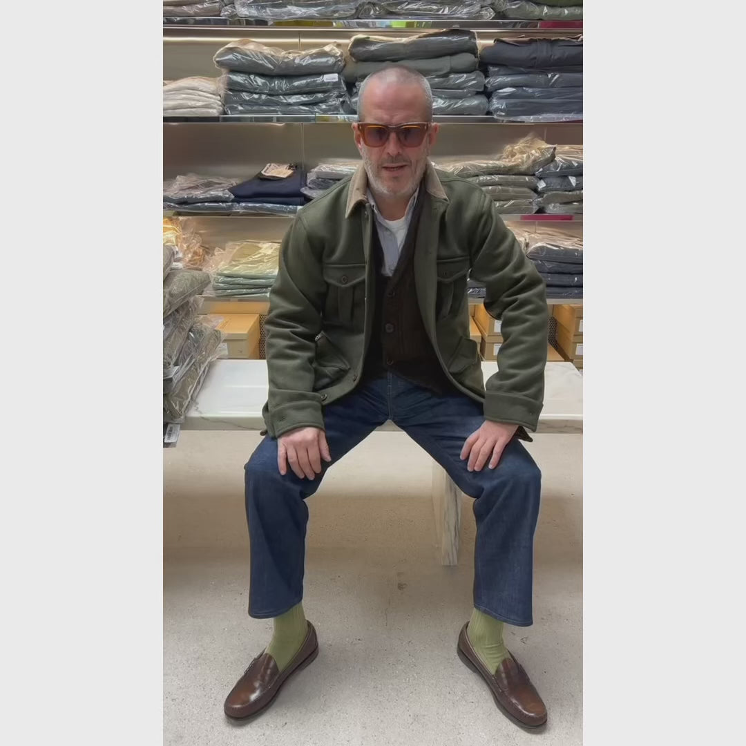 Giacca Safari realizzata in panno 100% lana in colore verde bosco.